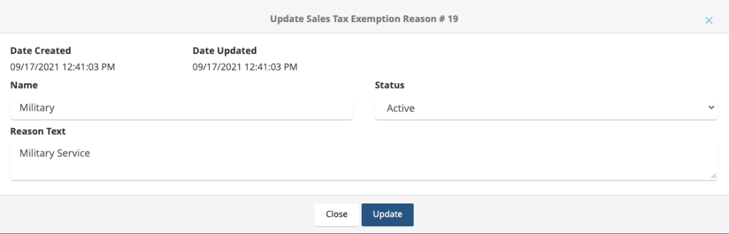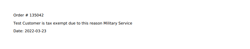 Since you can add multiple reasons this tag will automatically update to the correct text based on the reason you choose in the order-form when generating a sales tax exempt order