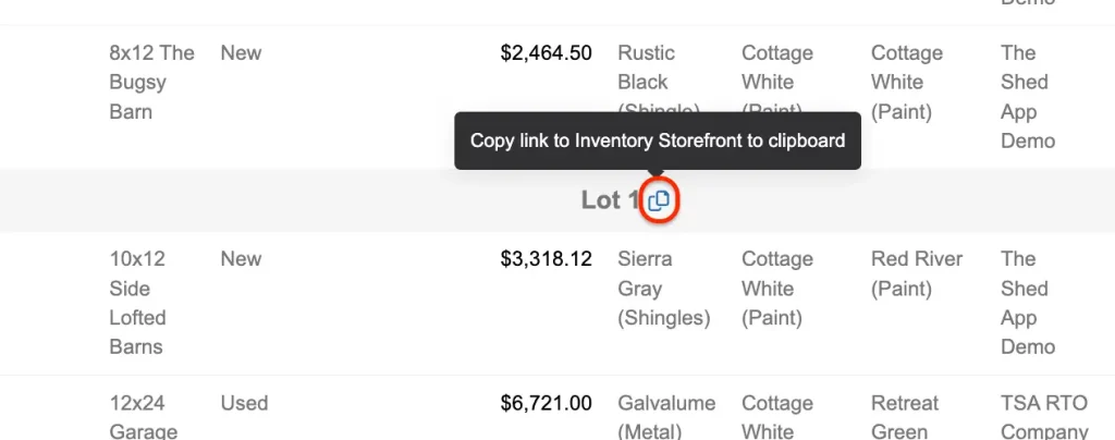 3. Automated Management: Seamlessly integrated with your TSA (The Shed App) account, the storefront updates in real time. New buildings become available as they are produced, and listings are automatically marked as sold when purchased, ensuring accurate inventory management.